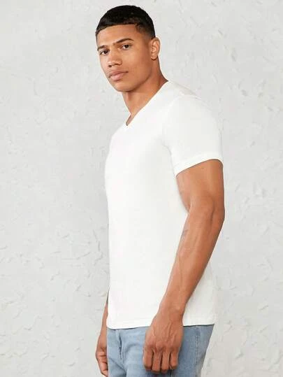 Manfinity Basics Men 100% Cotton Solid V Neck Tee