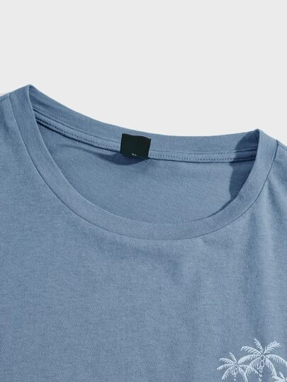 Manfinity Chillmode Men Cotton Letter & Tropical Graphic Tee