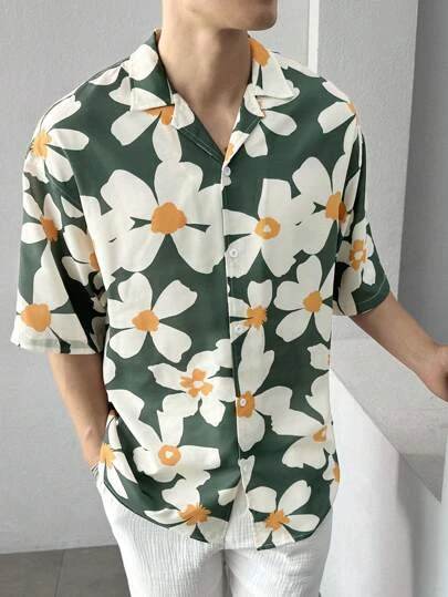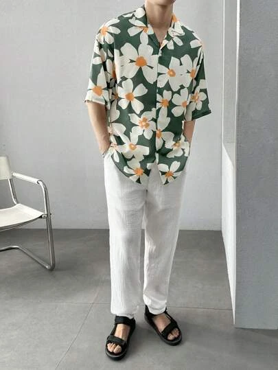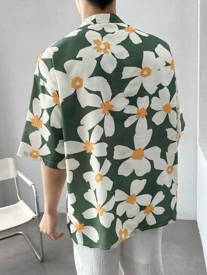 Manfinity Chillmode Men Floral Print Drop Shoulder Shirt