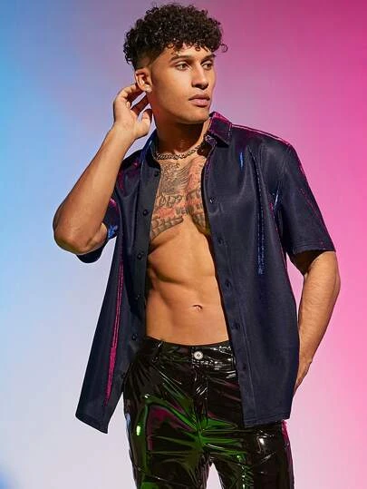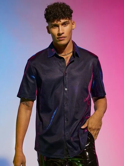 Manfinity Fever City Men Single Breasted Placket Hologram Shirt