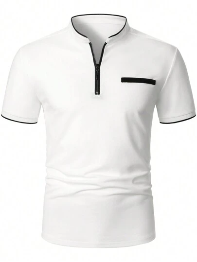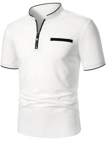 Manfinity Homme Men Contrast Trim Half Zip Polo Shirt