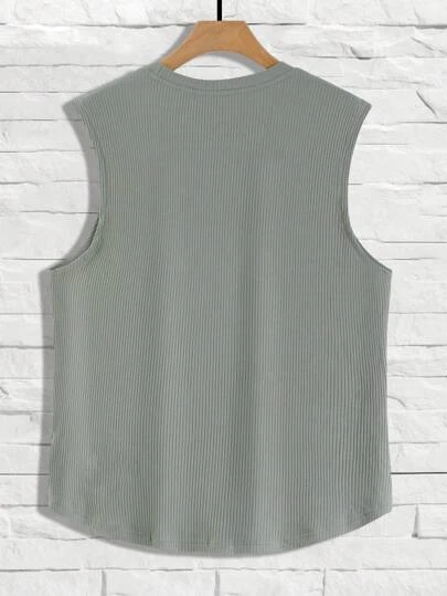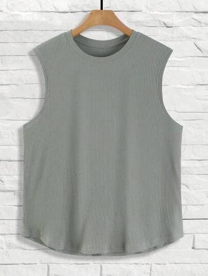 Manfinity Homme Men Cotton Solid Rib Knit Curved Hem Tank Top