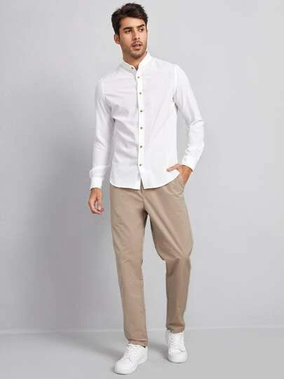 Manfinity Mode Men Cotton Solid Button Up Shirt