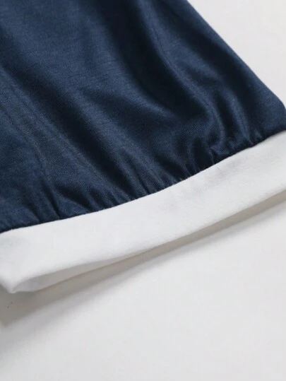 Manfinity Mode Men Striped Print Quarter Zip Polo Shirt
