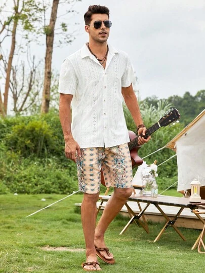 Manfinity RSRT Men Eyelet Embroidery Button Up Shirt