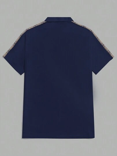 Manfinity Sporsity Men Letter Embroidery Contrast Plaid Side Seam Polo Shirt