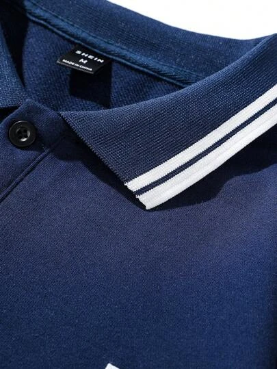 Manfinity Sporsity Men Letter Graphic Striped Trim Polo Shirt