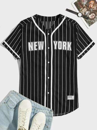 Manfinity Sporsity Men Striped & Letter Graphic Patch Detail Shirt