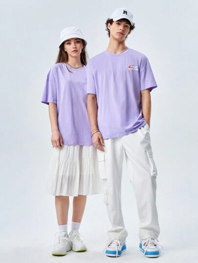Manfinity Unisex 1pc Cotton Slogan Graphic Drop Shoulder Tee