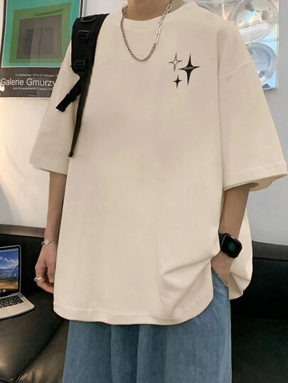 Be the first to review “Men Letter And Star Print Drop Shoulder Tee” Cancel reply