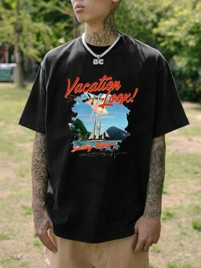 Be the first to review “Men Letter & Sailboat Print Tee” Cancel reply
