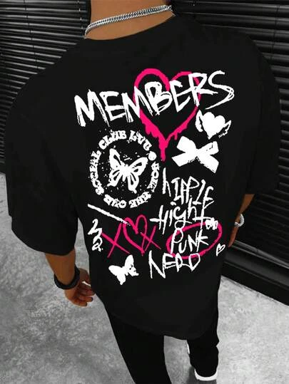 Be the first to review “Men Slogan & Butterfly Print Drop Shoulder Tee” Cancel reply
