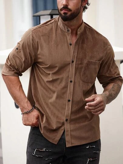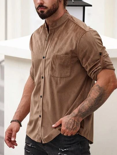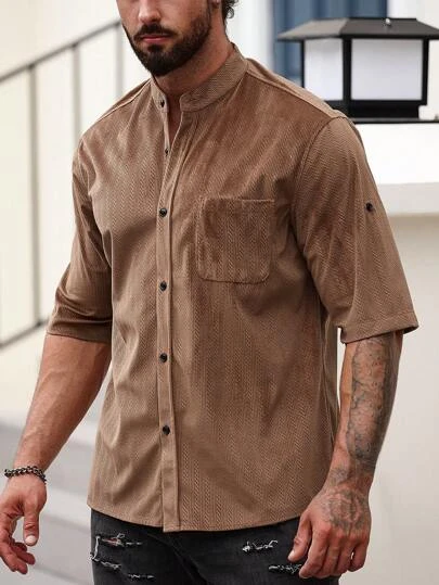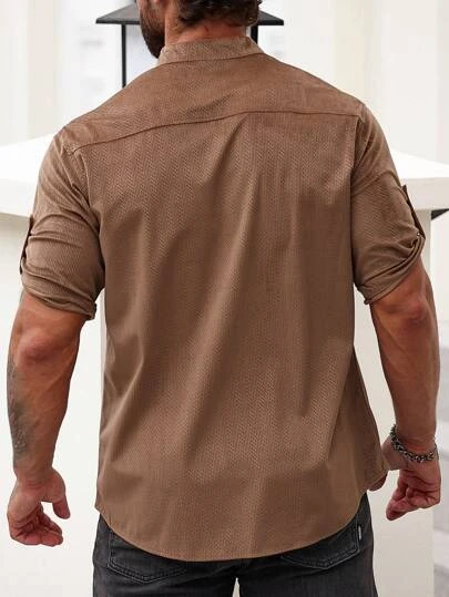 Men Solid Button Up Shirt
