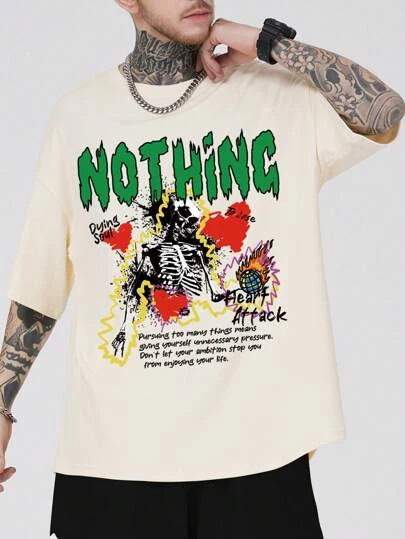 ROMWE Guys Slogan & Skull Graphic Tee