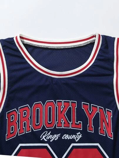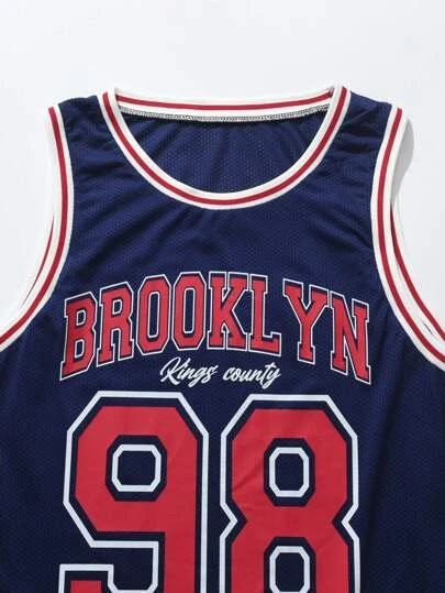 ROMWE Prep Guys Letter Graphic Contrast Trim Basketball Jersey