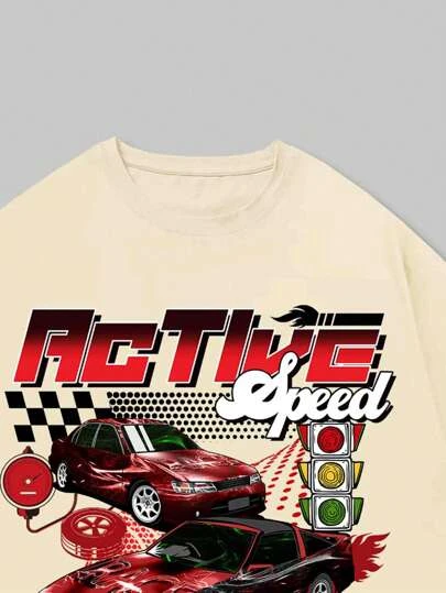 ROMWE Street Life Guys Car & Letter Graphic Tee