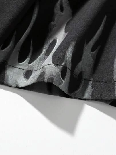 ROMWE Street Life Guys Letter & Fire Print Shirt