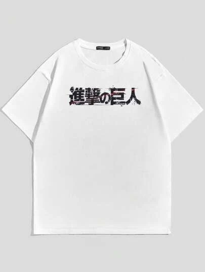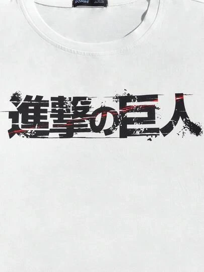 ROMWE X Attack On Titan Guys Figure Graphic Drop Shoulder Tee