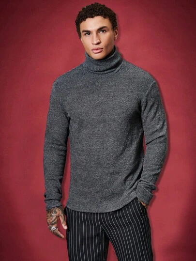 SHEIN Manfinity Basics Men High Neck Marled Knit Tee