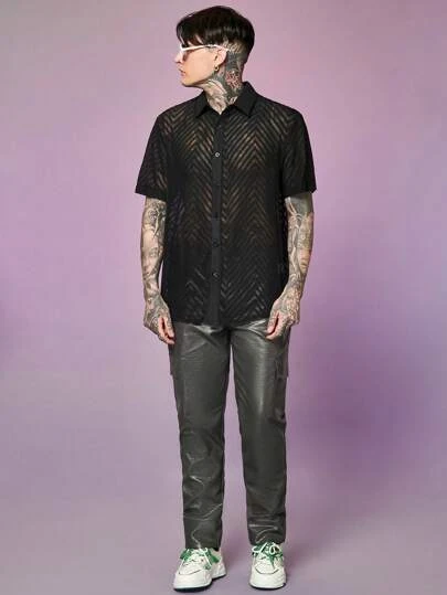 SHEIN Manfinity Fever City Men Chevron Print Button Front Shirt