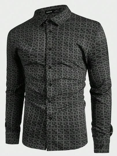 SHEIN Manfinity Homme Men Allover Print Button Up Shirt