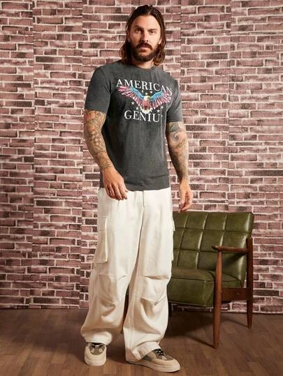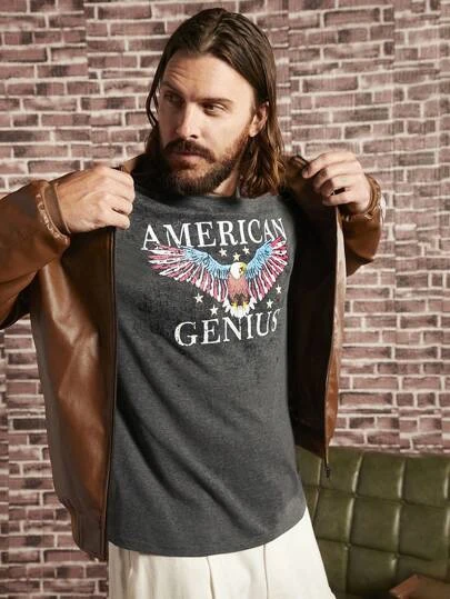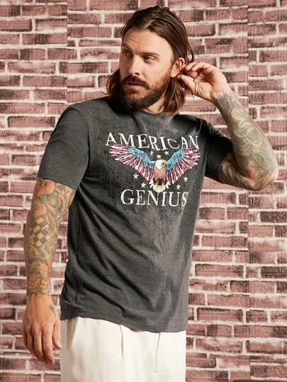 SHEIN Manfinity Homme Men Eagle & Letter Graphic Tee