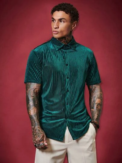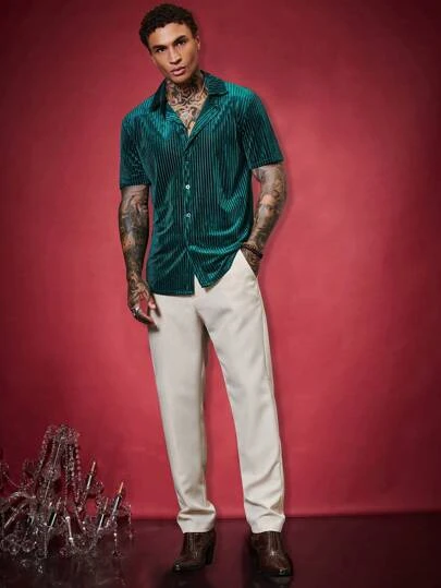 SHEIN Manfinity Homme Men Solid Button Front Shirt
