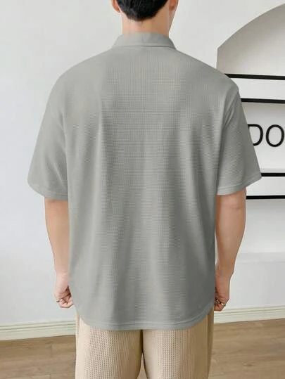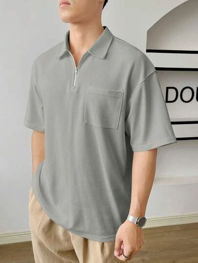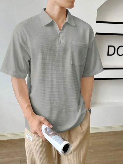SHEIN Manfinity Hypemode Men Quarter Zip Pocket Patched Drop Shoulder Polo Shirt